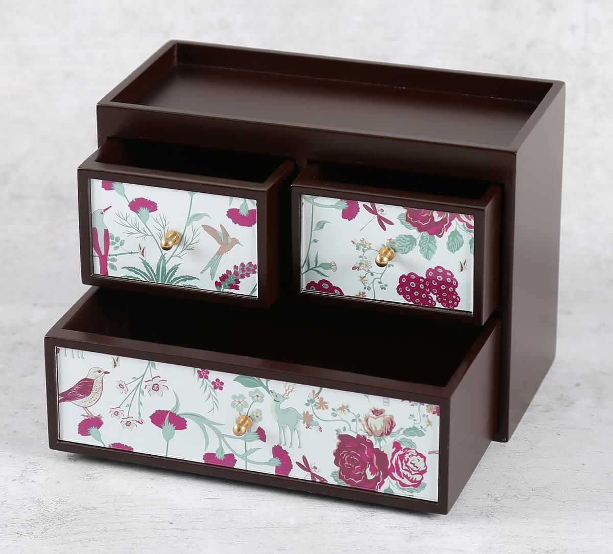 If you are among the people who love to decorate their house in an artistic yet subtle way, then this gray floral galore chest of drawers is just the right pick for you. This amiable design artwork takes you to a mystical space with its charming and alluring presence. Introduce this chest drawer with an ethnic flair to your living room and update the look. Visit the collection and make a purchase today!